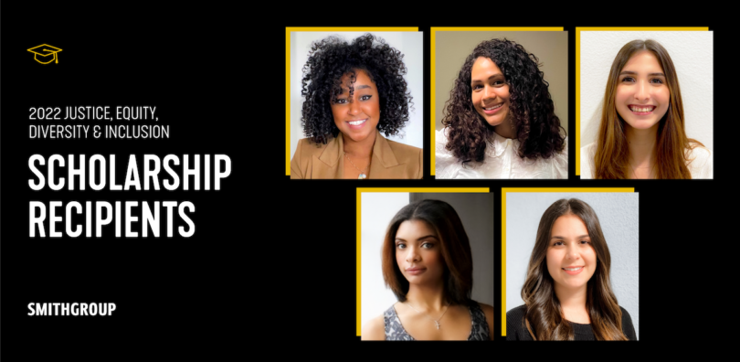 Detroit, MI – SmithGroup has named the recipients of the 2022 SmithGroup Justice, Equity, Diversity and Inclusion (J.E.D.I.) Scholarships. The annual scholarship program was established to foster a more diverse and inclusive design industry by investing in the next generation of design talent. Each scholarship recipient receives a one-time award of $6,000 to offset tuition costs, as well as a paid summer internship with one of the U.S. offices.