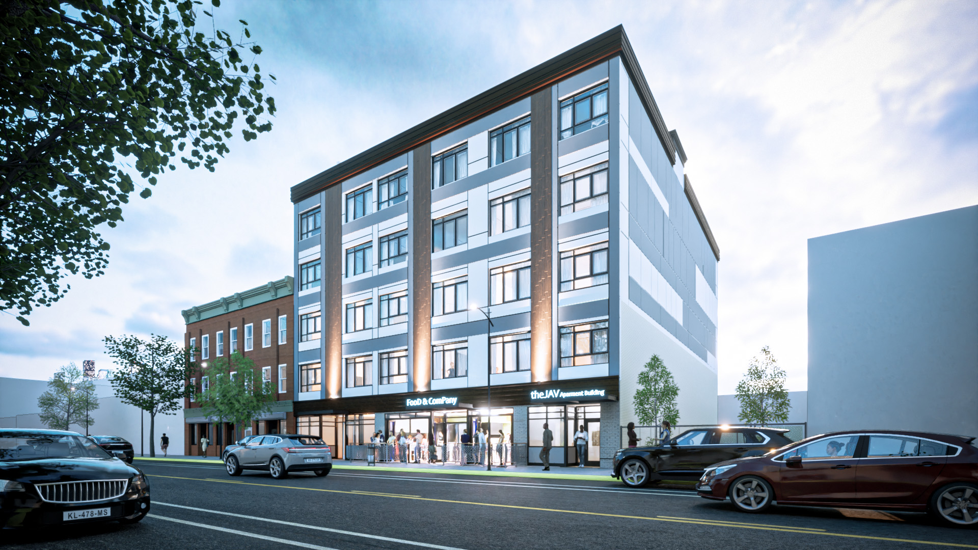 Once redeveloped, the property will include two units of ground-floor commercial space and 24 market-rate apartments on the upper floors. A food hall featuring several restaurants will occupy the larger of the two ground-floor commercial units.