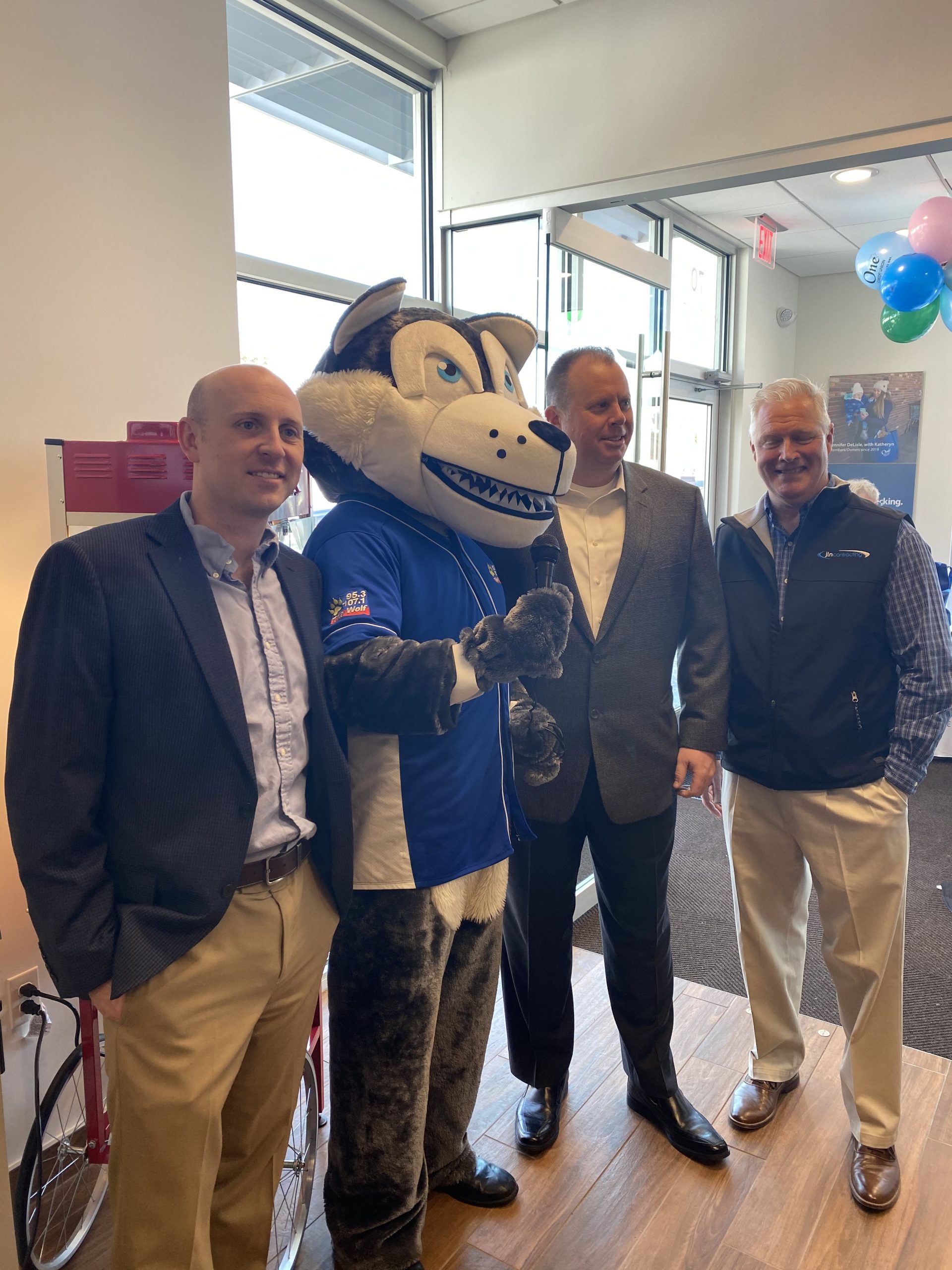 (l-r): Paul Cavolowsky, VP and sales executive, NES Group; Mascot for 95.3 Radio; Steve Harris, director of construction northeast, JLN Contracting; and Jack Neubieser, owner of JLN