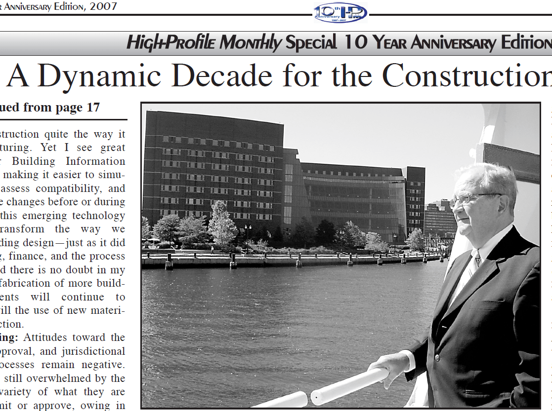 Recently the editors of High-Profile Monthly asked me to reflect on some comments I made about the AEC industry 10 years ago, when this publication was marking its 10th anniversary. Could I, they asked, take another look back at how far we’ve come in the last decade? My 2007 article focused on Boston’s Seaport District, and specifically the Federal Courthouse. Today, as this publication celebrates its 20th year in print, the Seaport District is again a superb case study of what has changed, and what has not, in our industry.