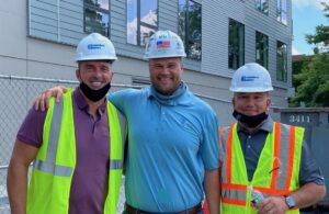 (l-r) On site at a Commodore Builders’ project: Chris Herren, founder of The Herren Project; Tom S. Gunning, director of labor relations at The Building Trades Employers’ (BTEA) Association; and Kevin Mikolazyk, executive director at The Herren Project