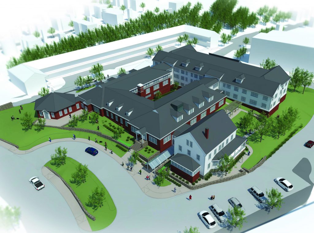 Forestdale Park will be the newest senior community from owner Volunteers of America Massachusetts (VOA MA), an organization that focuses on underserved segments of the population. The 2.6-acre site that the facility is built on was originally home to a poor farm in the 1800s. It later transitioned into a nursing home for the underserved population in Malden. After its closing in 2009, there was a need for an affordable assisted living option for families in the region.