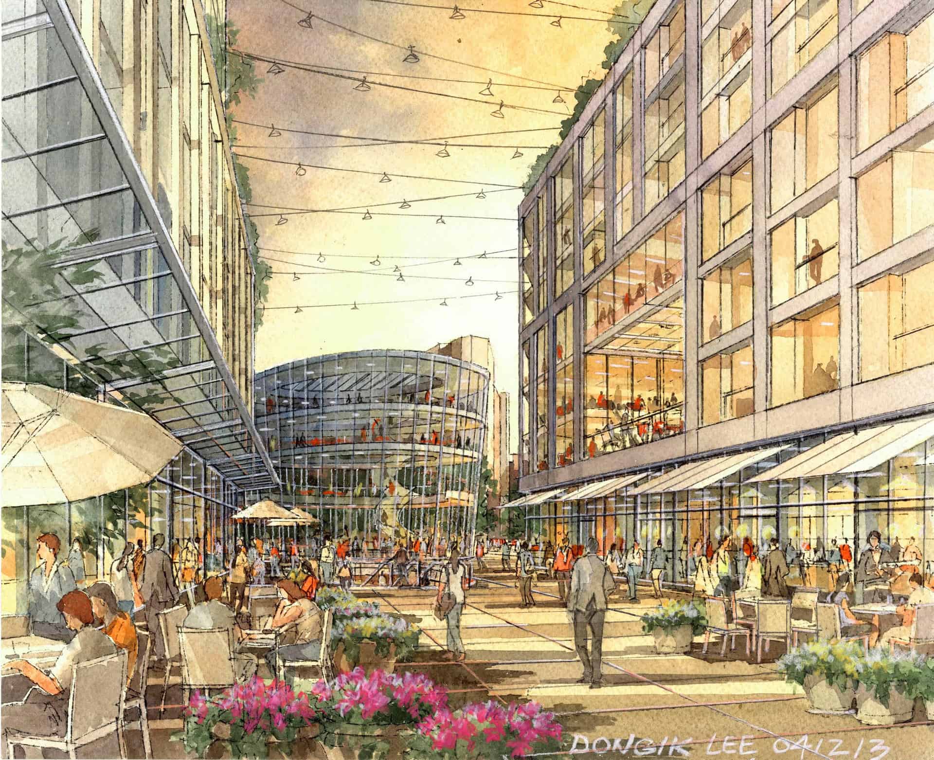An innovative and sustainable phasing mechanism has been developed to implement the master plan, including a sequence that keeps the garage in place during early phases by carefully threading development on and around the existing structure.