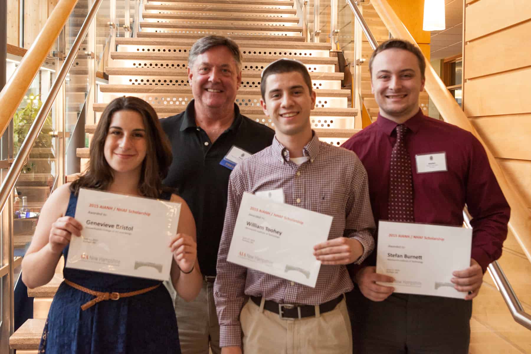 The scholarships were presented by Paul Bourbeau, AIA, president AIA New Hampshire and vice president of the NH Architecture Foundation, at a recent AIANH event at the Peter T. Paul College of Business and Economics, University of New Hampshire, Durham.