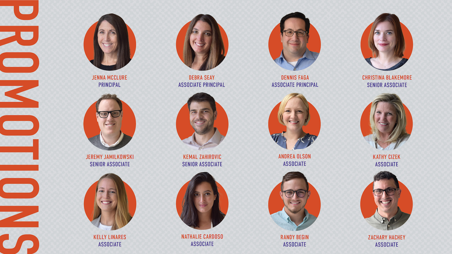 Additionally, Christina Blakemore; Jeremy Jamilkowski, AIA; and Kemal Zahirovic were promoted to senior associate and Andrea Olson, AIA, IIDA, WELL AP; Kathryn Cizek; Kelly Linares, IIDA; Nathalie Cardoso; Randy Begin, AIA, LEED Green Associate; and Zachary Hachey were promoted to associate.