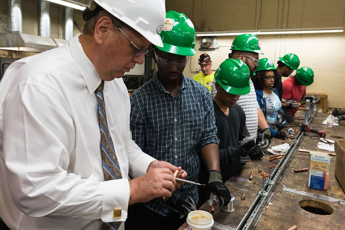 “You may learn about plumbing in a classroom but having the hands‐on experience is invaluable to apprentices,” said Clancy. “We are fortunate to have the space and the talent to help mentor these young students. What they experienced during their visit will stay with them throughout their career.”