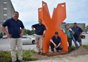 Cummings drew on in-house expertise to complete the design, construction, and installation of these architectural monuments. During this process, team members began referring to the artwork as the “Iron Butterfly,” or Ferro Papilio, for its resemblance to a monarch butterfly in a garden.
