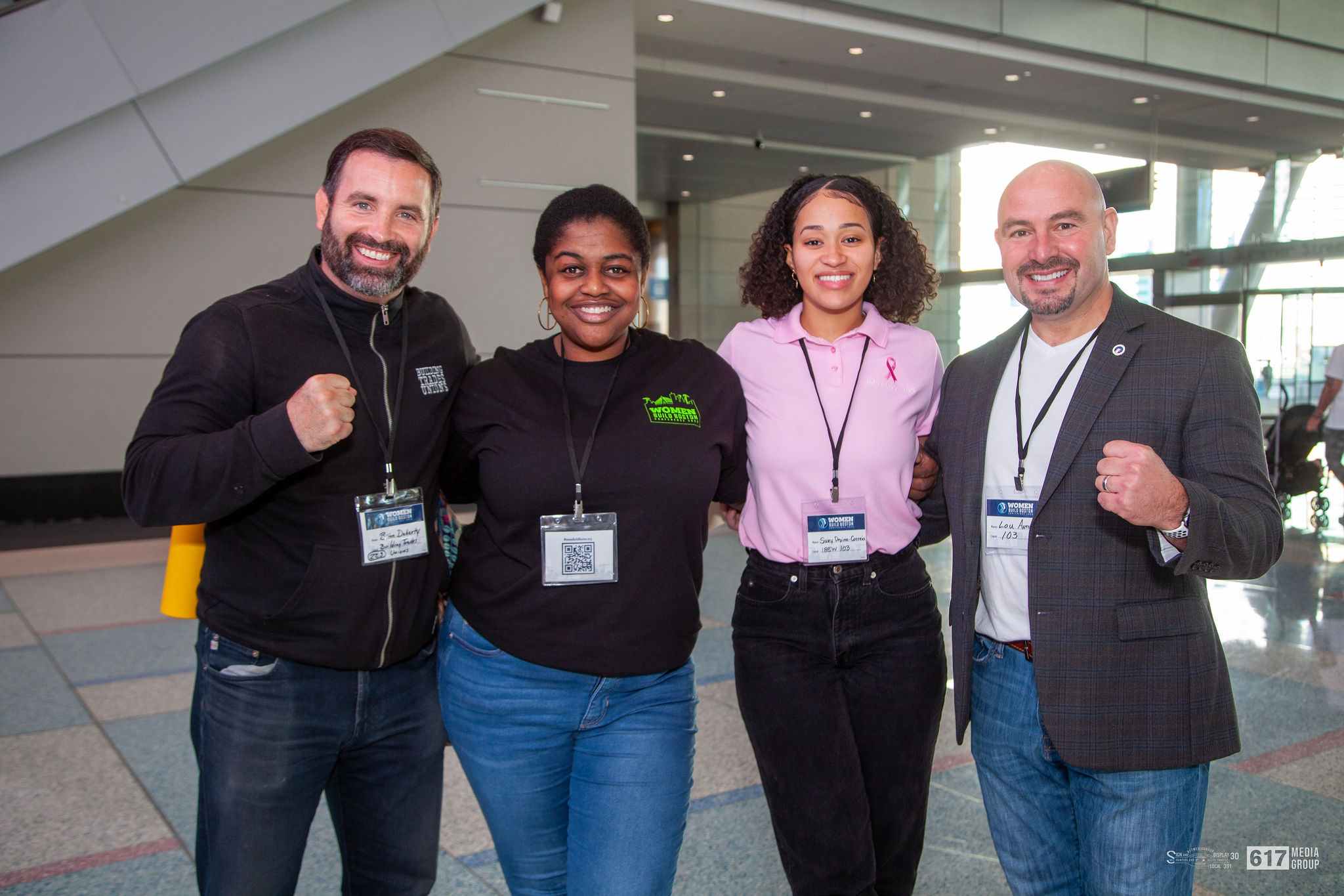(l-r): Brian Doherty, Greater Boston Building Trades Unions; Nancy Luc, Building Pathways; Suzy Depina-Correia; and Lou Antonellis, IBEW 103