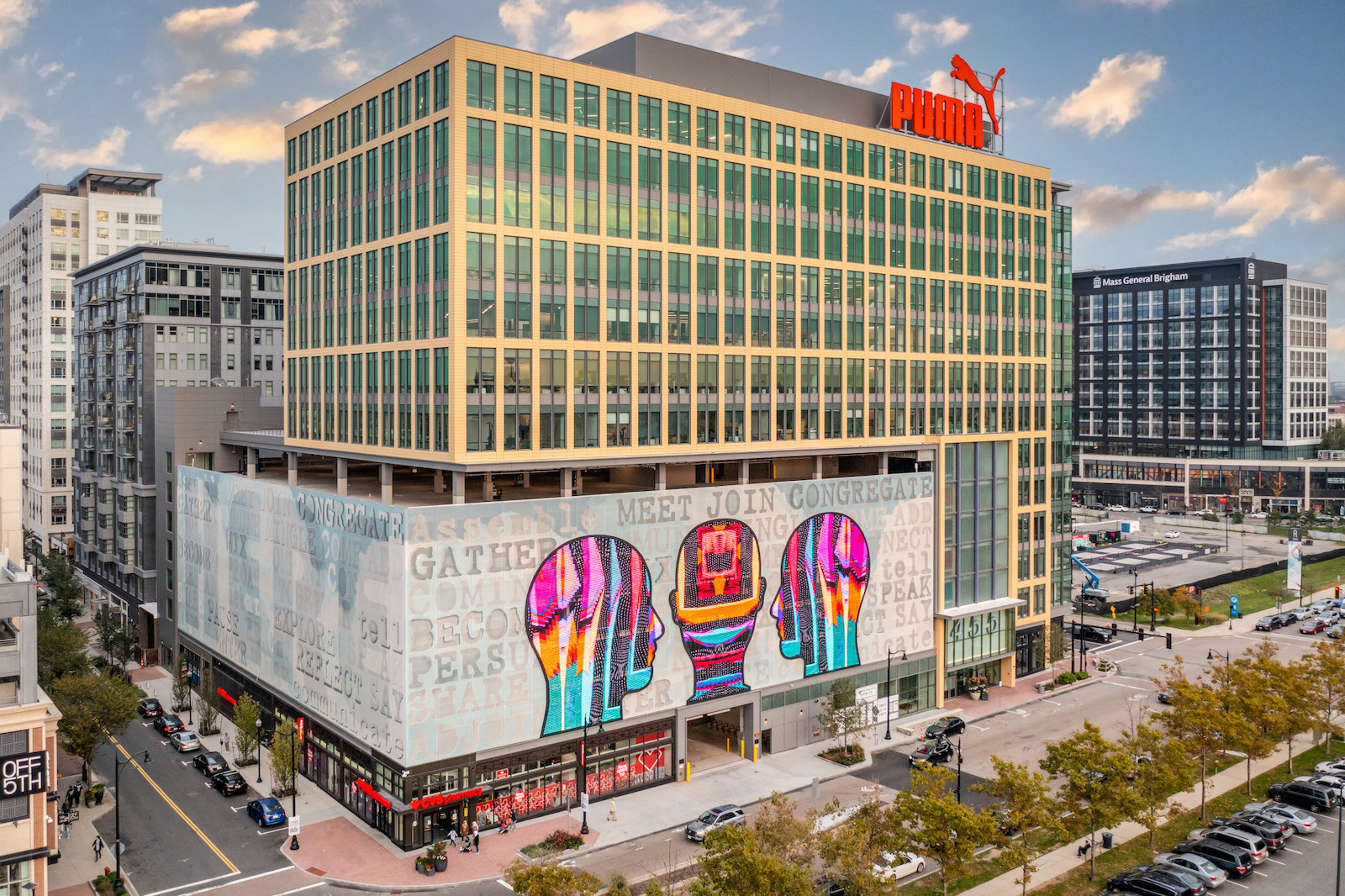Phase 3 of Assembly Row in Somerville furthered the overhaul of the former auto plant site that gave the area its name and closed in the 1950s. The latest wave included 277,000sf of office space, 56,000sf of retail, and 500 residential units at a cost between $465 million and $485 million. At the close of 2021, 244,000sf of office space was leased and roughly 160,000sf of office space was occupied, all of the apartments in the new residential tower were online, and 23,000sf of retail space was open for business, according to Federal Realty. The office building is the North American headquarters of sports apparel firm Puma.