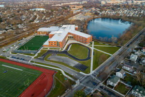 The 445,100sf project, with funding in collaboration with the Massachusetts School Building Authority, is being designed and constructed net-zero ready and to U.S. Green Building Council (USGBC) LEED Ratings System LEED v4 BD+C: Schools certification specifications. The design includes 283 geothermal wells and a roof-top photovoltaic system with over 75,000 panels. The new school will also feature improved ADA accessibility, improved health and safety standards, video production space, makerspaces for robotics and engineering, and science labs.