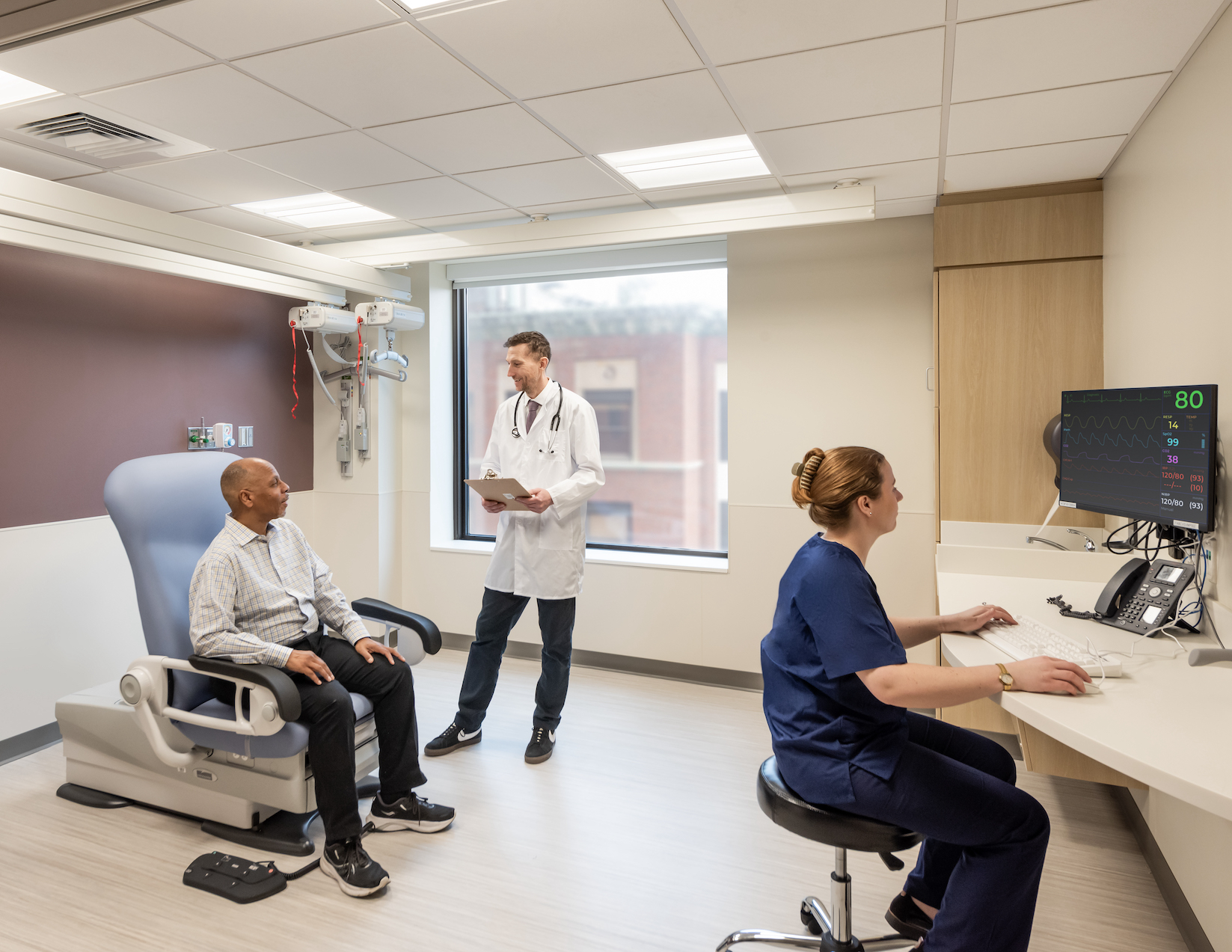- Operational Efficiency: Sufficient storage, conveniently located, universal, flexible exam rooms and infusion spaces, staff visualization flow, easy to maintain finishes and materials