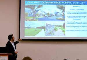 Kate MacDougall and Trey Zaharek led a presentation entitled “Blueprints for Change: Sustainable Building Structures” at the Construction Institute’s 2024 Women Who Build Summit at UMass Amherst.