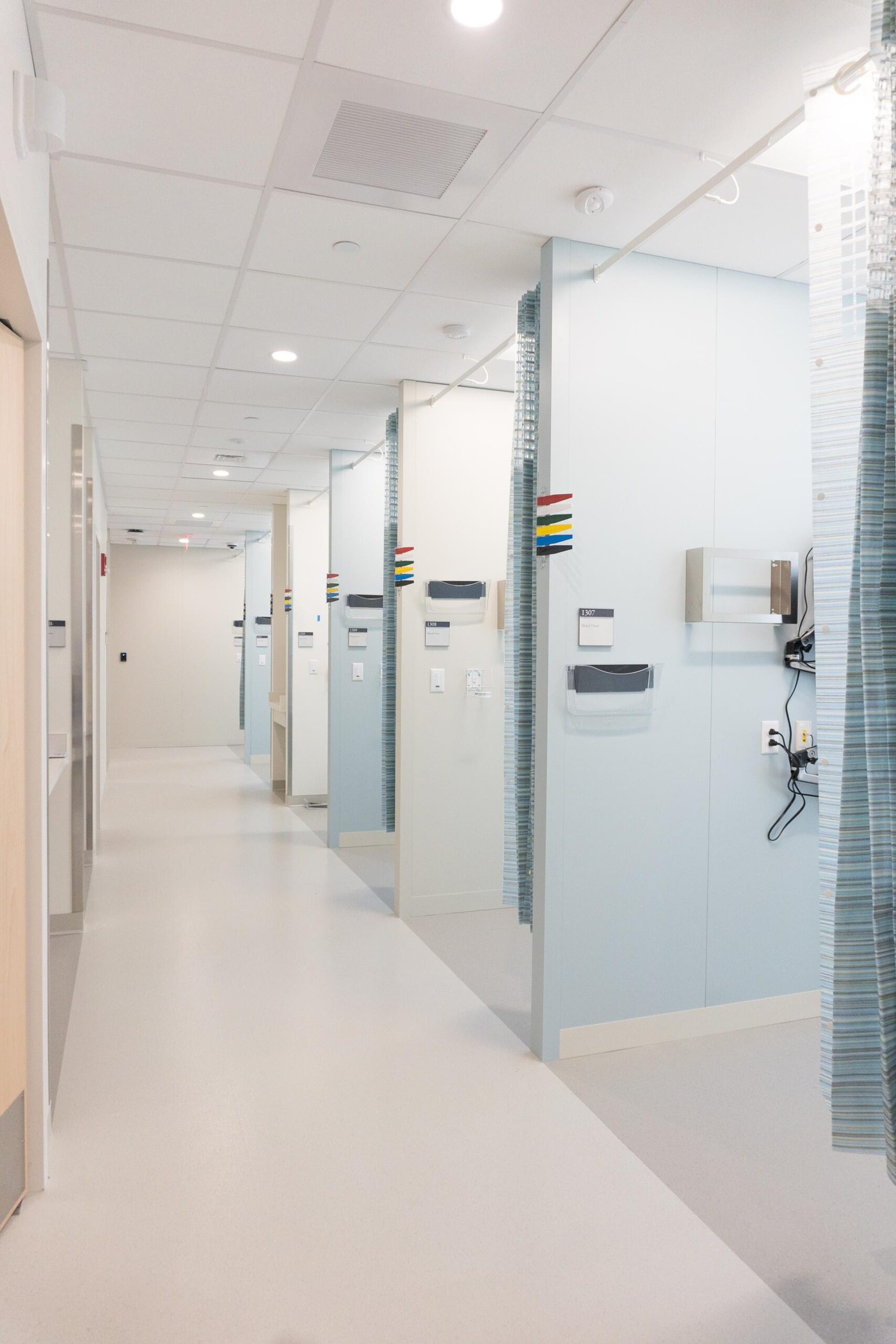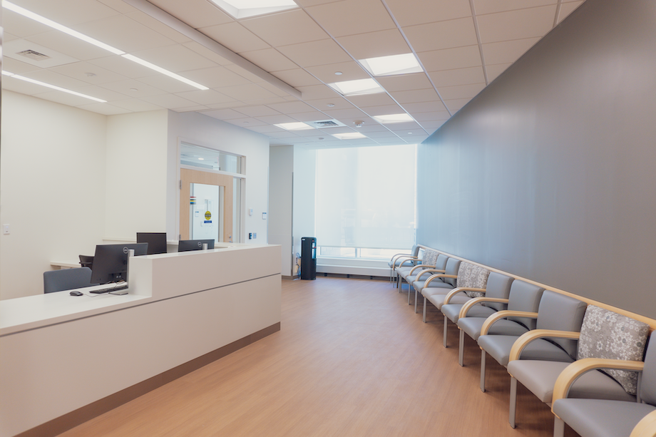 The spaces were previously occupied by retail, office, and food-service tenants, with complex infrastructures to house commercial mechanical and refrigeration equipment. TOCCI completed extensive under-slab scans to locate existing drain lines for subsequent underground trenching and plumbing. The team cut an 11-inch structural indoor slab to connect plumbing lines. KI modular walls – partitions made from materials fitting infectious control and sterile surfaces requirements in healthcare facilities – were installed throughout.