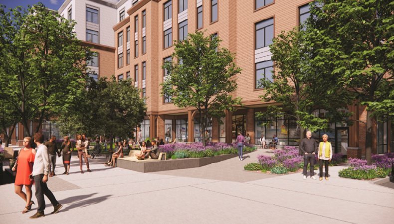 The 819 Cummins Highway project converts four parcels of currently vacant land in Mattapan into 40 homeownership units, including seven income-restricted units. It will include retail space, and a community room and fitness center for residents. A large landscaped plaza will also be installed at the project site. This project is enabled by, and aligned with, Squares + Streets zoning, and is also contextually aligned with PLAN: Mattapan.
