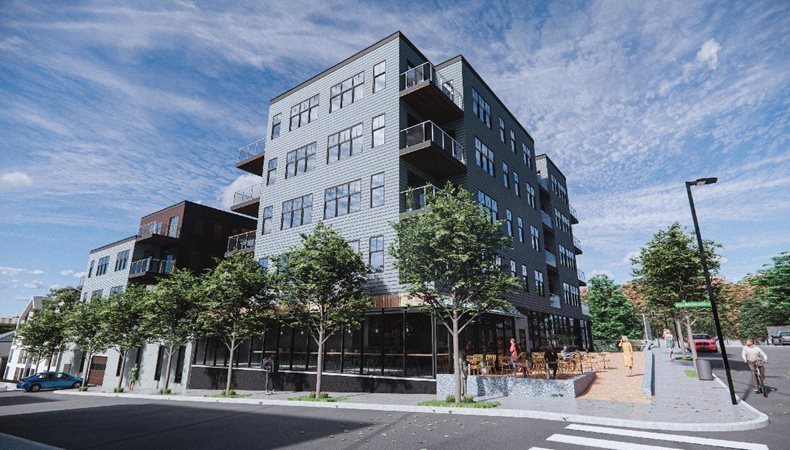 The 1274 Massachusetts Avenue project will combine four parcels, some of which currently sit empty, to build a 6-story building with ground floor retail and 45 rental units in Dorchester. Eight of those units will be income-restricted. The project will include adding trees to increase shade and cooling efforts in the neighborhood, improvements to the sidewalks, and new curb extensions.