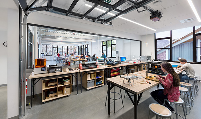 Bowdoin worked with the school and its architect, Perkins + Will, for the construction of this major addition. The expanded facility features a new main entrance lobby, dining commons, several classrooms including a state-of-the-art STEAM classroom, A/V studio, innovation space, maker space, College and Career Readiness space, and administrative offices. ‘