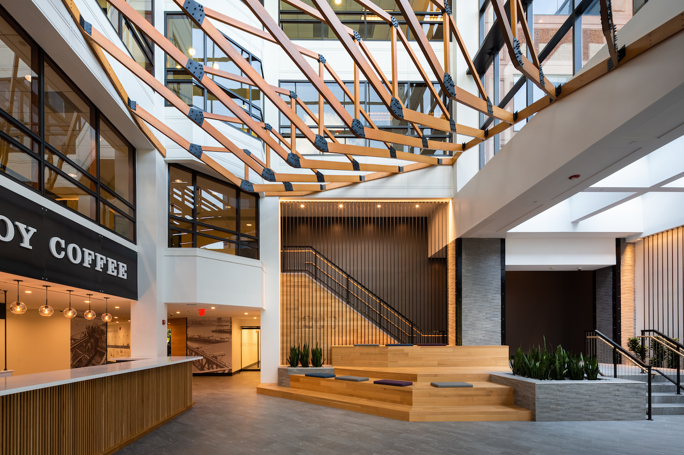 Quincy, MA – Bowdoin Construction Corp. recently completed a 234,667sf Class A office space repositioning project in Quincy for Bridge Investment Group.