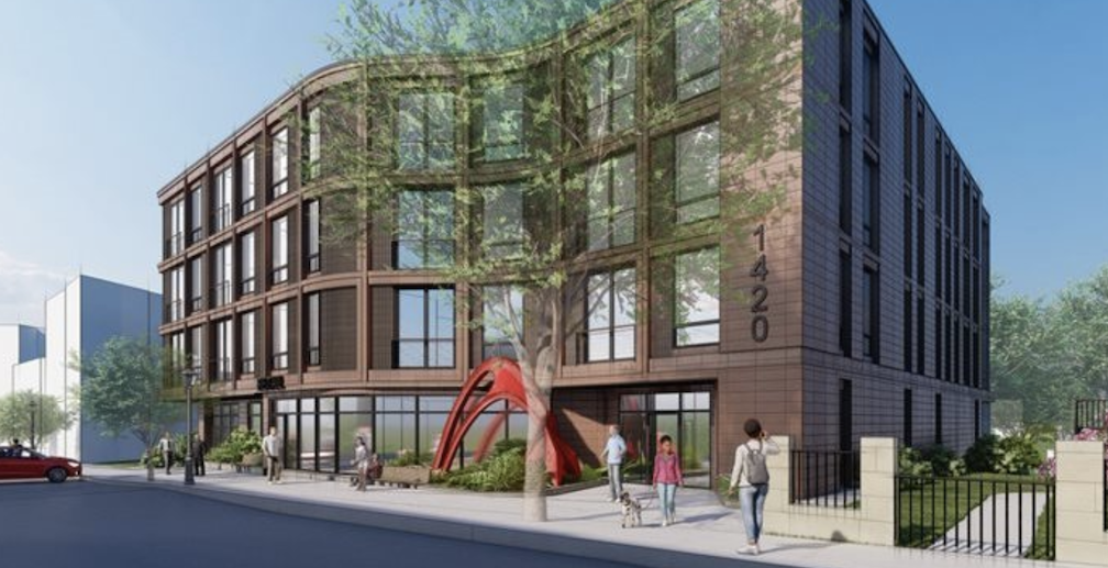 Located in the Fields Corner section of Dorchester, the 1420 Dorchester Avenue project is a 5-story building providing 46 housing units and retail to the neighborhood. There will be 26 one-bedroom units and 20 two-bedroom units; seven of the units will be income-restricted. This development will include indoor and outdoor bike parking and provide space on site for a future public art installation.