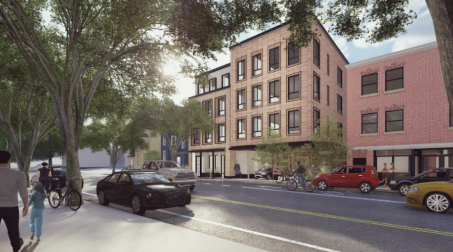 The transit-oriented development at 34 Oak Street in Hyde Park will build a new apartment building with 20 rental units, four of which will be income-restricted. On the project site, the public realm will be enhanced through widened sidewalks, new ADA-compliant curb ramps, bike racks, and new trees.