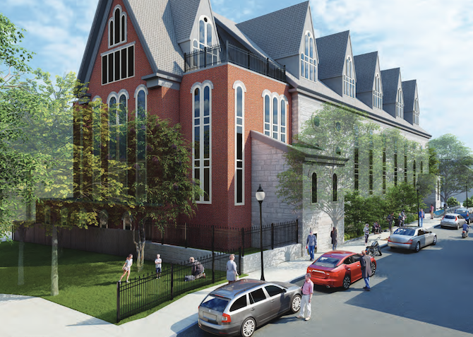 A former church building in South Boston will be converted into a 6-story residential building with 35 rental units, including six income-restricted units. The project at 354 E Street will maintain the majority of the existing historical structure and architectural characteristics of the Italianate-style church building. Public realm improvements will include new crosswalks and better sidewalks in the area.