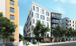 The transit-oriented development at 1-4 Terrace Place in Mission Hill will build a new 6-story residential building with 47 homeownership units, seven of which will be income-restricted. The project will contribute $71,688 to the Boston Transportation Department’s (BTD) Terrace Street Study, and $12,925 to the city’s Bluebikes program. The new development will include solar renewable energy systems, and is targeting LEED Platinum standards.