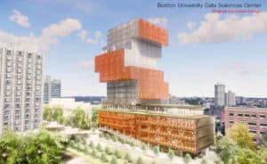 Located at 665 Commonwealth Avenue, the newly approved Boston University Data Sciences Center creates a hub for the interdisciplinary study of data sciences and will construct an approximately 305,000sf building with a height of 19 stories (305 feet). The project site is currently a surface parking lot. The building features environmentally friendly carbon-free design and created approximately 1,040 construction jobs.