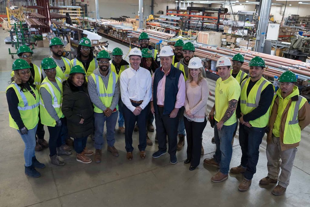 Norwell – A group from Building Pathways Boston recently visited the corporate office and pre-fab shop at American Plumbing and Heating to gain valuable knowledge and hands-on experience in the plumbing industry.