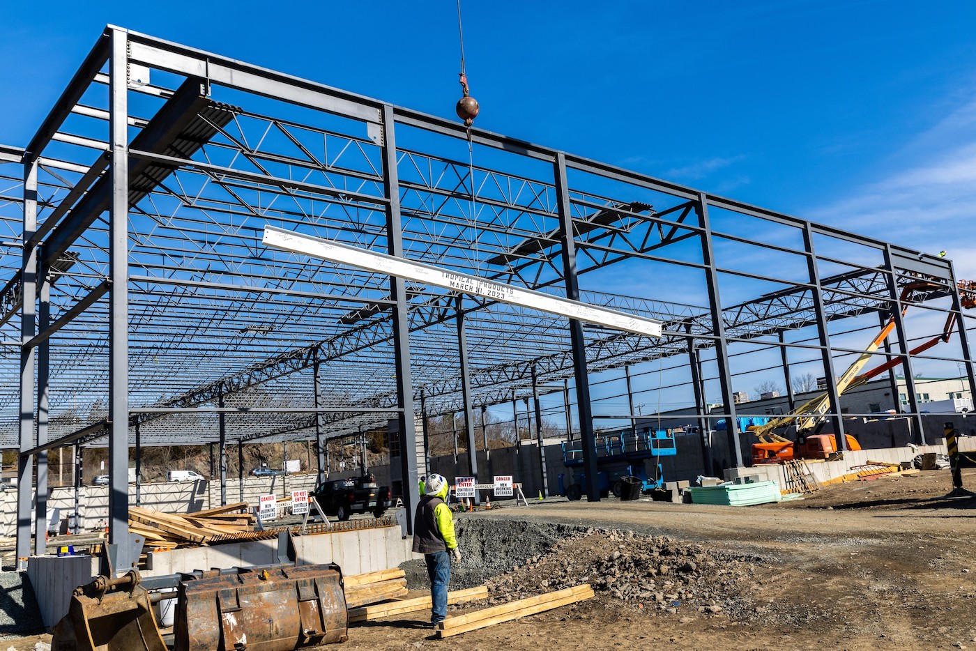 “It is really gratifying to see the progress,” said Ed Berman, president of Tropical Products, of the topping off milestone. “We went from buying a 5.5-acre lot with significant ledge and landscape challenges to blasting and excavation, and the transformation has been incredible.”
