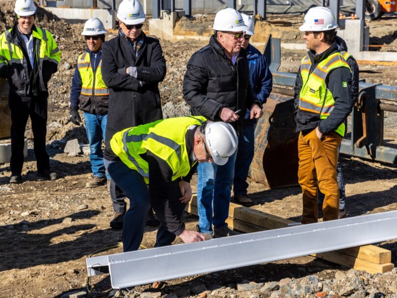 At the topping off, Berman was joined in signing the final steel beam by co-owner and wife Kerry Berman, Vice President of Finance and Operations Renee Dionne, and several other company representatives. Connolly Brothers President Jay Connolly and Vice President of Real Estate/Development Thaddeus Minshall were also in attendance with several Connolly Brothers staff, alongside Cambridge Savings Bank Senior Vice President Angela Gee and Chief Credit Officer Michael Bonsey, as well as John Rizzo, partner with Wakefield, Mass. accounting firm CRR, LLP. The final beam completed the outline of a single-story, bi-leveled building that will be nearly 100,000sf with a partial mezzanine, including a four-truck loading dock.