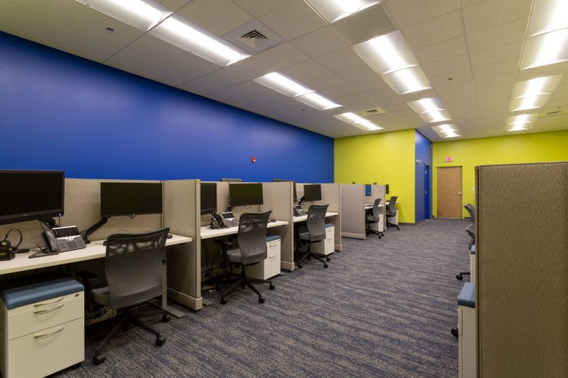 The facility includes private offices, an open floor plan for customer service representatives, a data room, renovated restrooms and new mechanical, electrical, and plumbing throughout. The new Geico office also features LED lighting, luxury vinyl tile, carpeting and custom millwork.