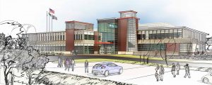 The existing school was originally constructed in 1975 and serves grades 9-12. The new school design will group academic spaces around each technical discipline to foster a sense of community and collaboration.