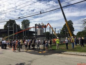 Weymouth, MA – CTA Construction Managers joined elected officials, Tufts Library leaders, The Mass Board of Library Commissioners, and the public to mark the official steel topping off of the new 50,000sf library located on Broad Street in Weymouth.