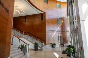 The facility is a 5-story office building in Natick, designed by Postmodernist Robert A.M. Stern in 1985. For this competition, the modernization of a facility with architectural significance without forsaking history was the winning catalyst. Stern’s Postmodernism style centered on integrating classical and modern elements in a whimsical, irreverently playful, and complex manner.