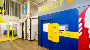 The new location includes a huge studio space that doubles as Project B Gallery. It includes a private office, three loading docks, café and roastery, and a frame shop in the building.