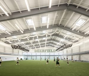 Deerfield, MA – Skanska, a global construction and development firm, recently announced that Deerfield Academy’s new fieldhouse has achieved LEED Gold certification. Regarded for its impressive architecture and design by Sasaki, the complex also recently received the Honor Award for Excellence in Architecture from AIA New England.