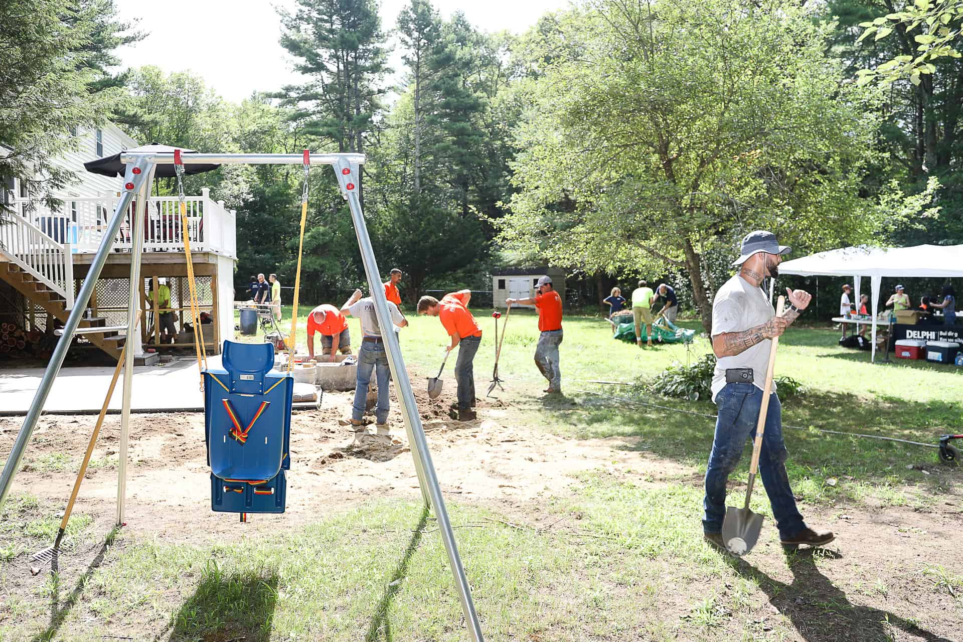 Delphi CEO Jake Simmons accepted this latest invitation from Make-A-Wish and called on Tim and Stephanie Reid, owners of Paragon Landscape Construction, to join forces on this charitable initiative. The companies combined their expertise, donated materials, and fielded teams of volunteers to bring the vision to life.
