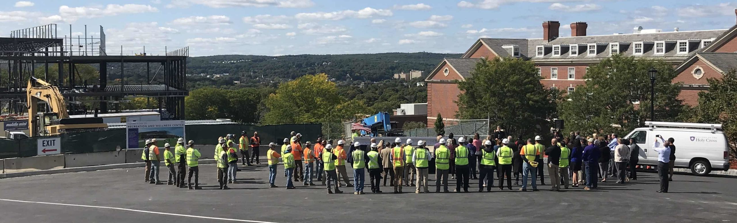 Worcester, MA – Dimeo Construction attended the topping-off milestone celebration held recently for the new Joanne Chouinard-Luth Recreation and Wellness Center, a state-of-the-art facility designed by Cannon Design for campus recreation and intramural sports at College of the Holy Cross.