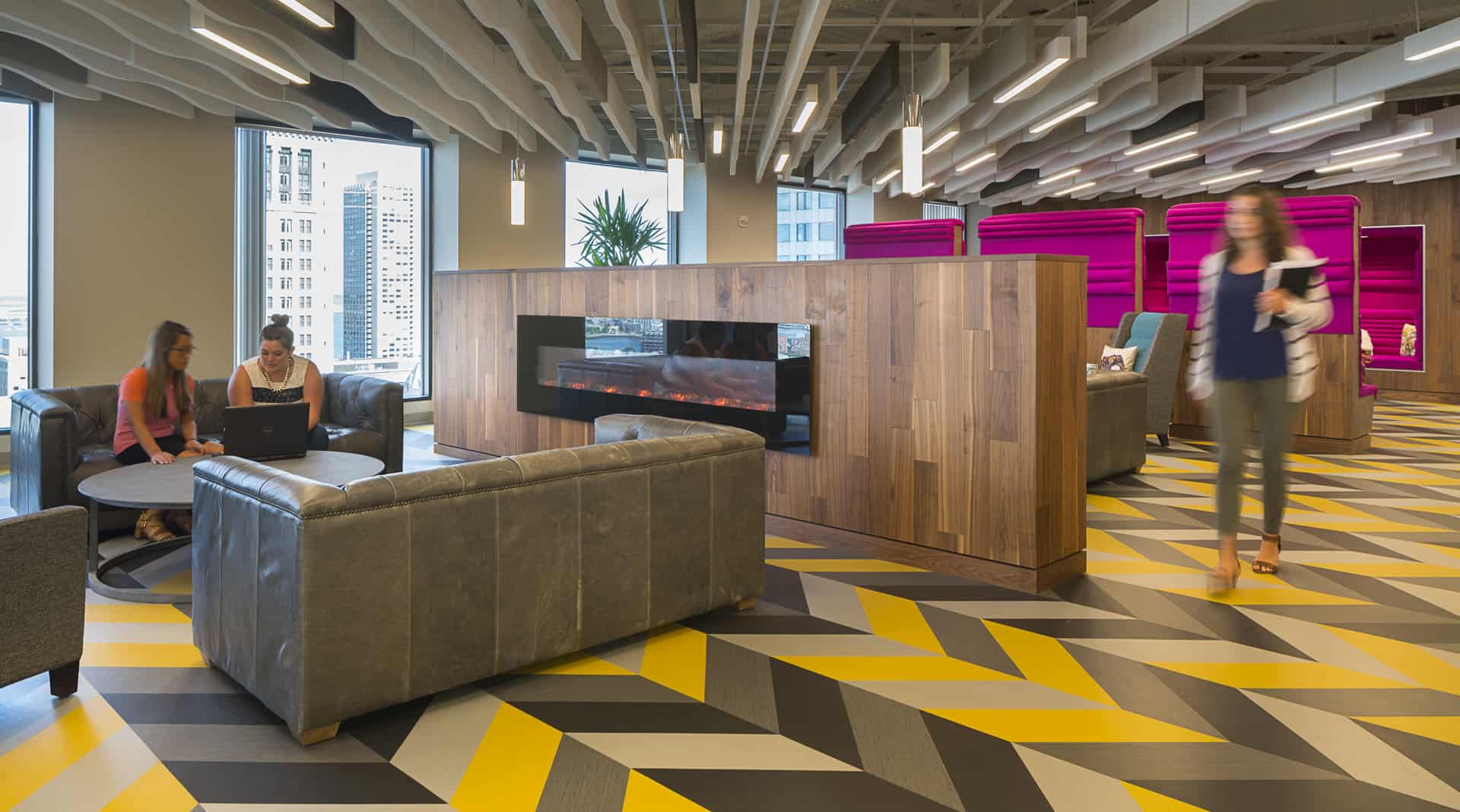 The new floor includes an additional 136 workstations (with the ability to add another 36 stations at a future date), conference rooms, a scrum area, a 32-seat training room, a nap room, storage, collaboration spaces, and a large lounge area.