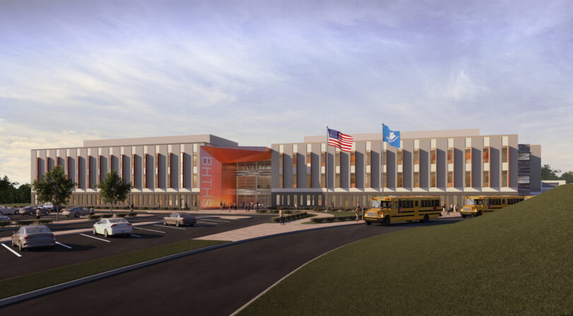 Currently under construction in Bridgeport, Conn., the new Bullard-Havens Technical High School will feature 13 vocational programs within the 215,000sf building. In accordance with the Governor’s Council on Climate Change, all state-owned facilities must lead by example through reduced energy usage and carbon emissions. To this end, 81% of the building is served by a geothermal energy heating and cooling system using high efficiency water to water source heat pumps. Electric rooftop air handling units serving a network of variable air volume (VAV) units provide ventilation for this system. The remaining 19% of the building contains six industrial vocational shop suites served by energy recovery ventilation (ERV) and variable refrigerant flow (VRF) heat pump systems. These all-electric system selections result in a building with net zero carbon emissions and significantly lower projected energy usage than the ASHRAE Standard 90.1 baseline. Post-construction installed photovoltaic panel arrays will create on-site renewable energy production, further contributing to the project’s sustainable design goals.
