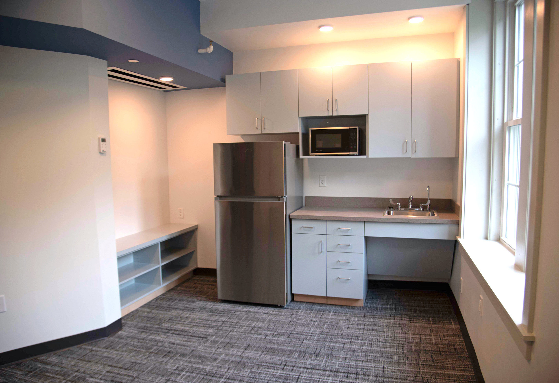 The renovation project involved updating two kitchens and several restrooms, including the installation of new countertops and cabinets. The enhancements also included painting various spaces; upgrading HVAC, electrical, plumbing, and life safety systems; and installing new flooring, lighting, and millwork throughout the areas.