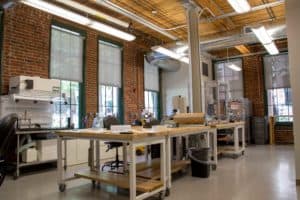 Following designs by LaFreniere Architects, Vantage Builders expanded Radius’ footprint in the building. The new space includes an assembly area, workshop, and test lab where Radius team members craft product models and functional prototypes. They also perform small scale builds and verification testing for clients through sculpting and forming, machining, thermo-forming, additive manufacturing, and a variety of other techniques.