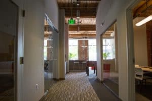 Efficient lighting was installed throughout. Carpeting was installed in the common areas and conference room, while VCT (vinyl composition tile) was placed in the workshops. Vantage renovated the kitchen area with new counters, millwork and paint.