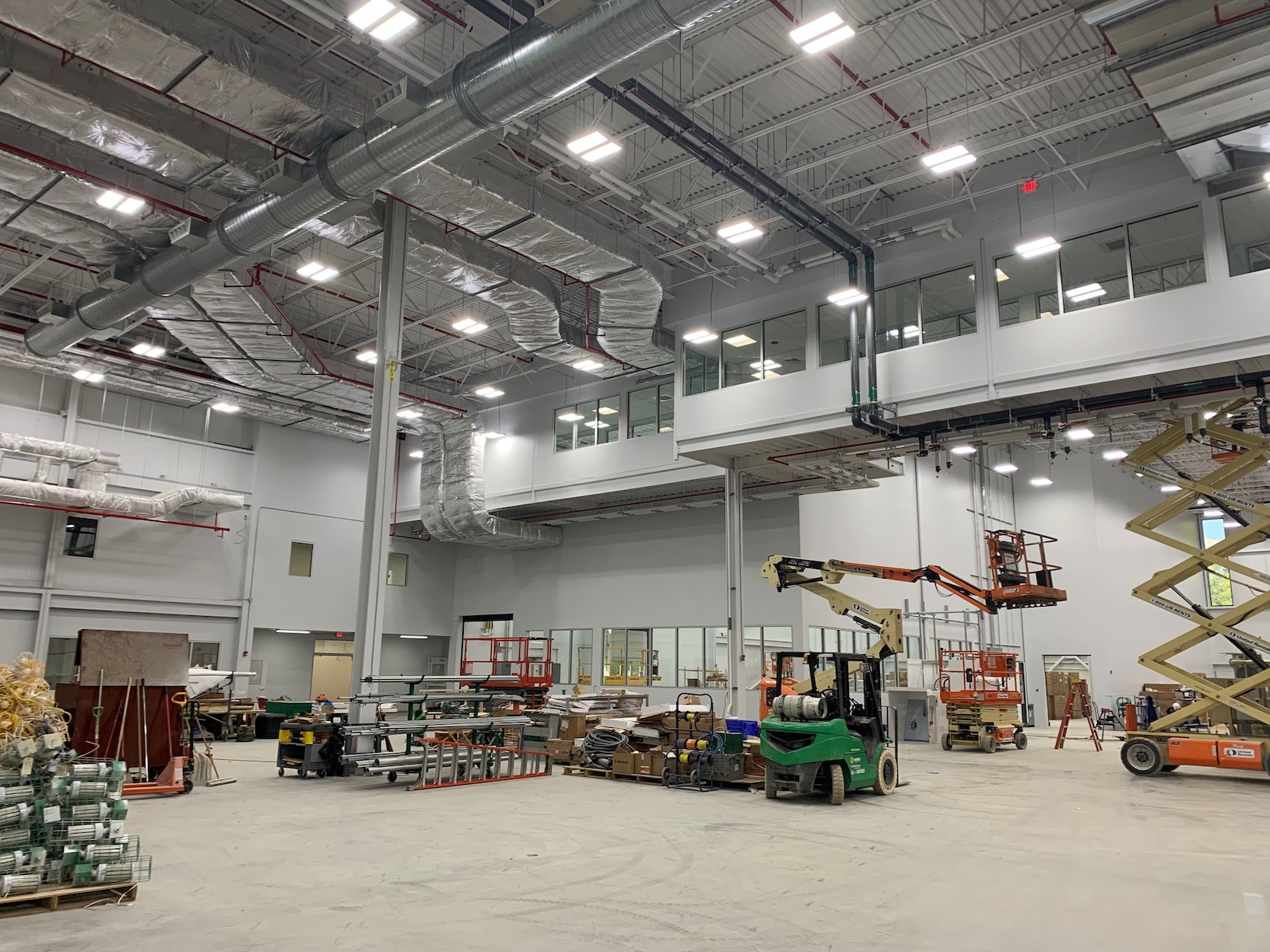 As a result of the high electrical demand from process equipment, it was deemed important to offset by ensuring building electrical systems and lighting had reduced power density to help balance overall electrical use. The building’s manufacturing electrical requirements resulted in the need for three 3000amp electrical services, which is enormous. To help reduce the total electrical load, the design included LED lighting throughout the facility. In the administration area, where skylights were installed, photocell technology was used.