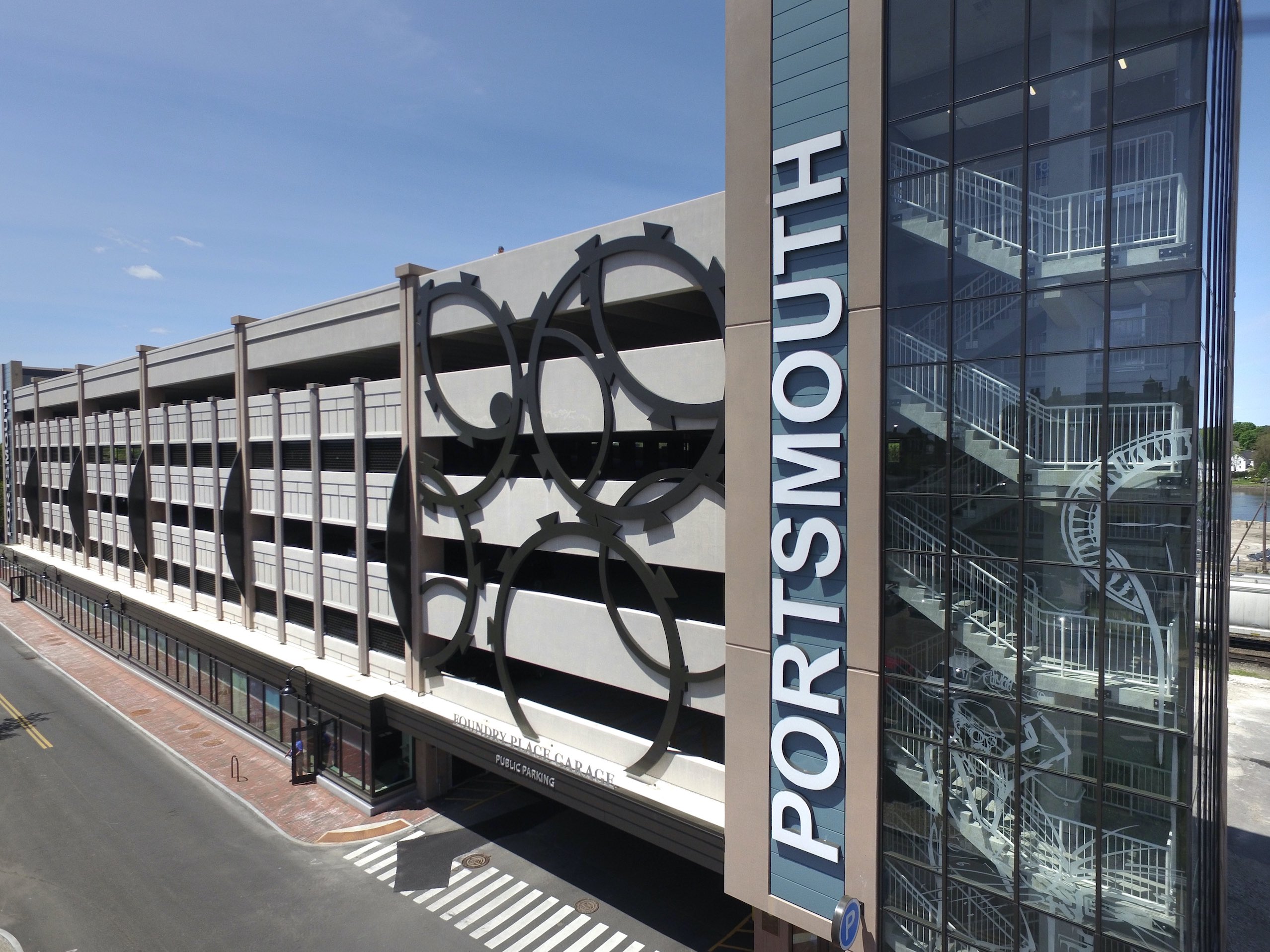 Incorporating four colors of concrete, the garage is a very stylish addition to the urban landscape. The shear walls at the end of the garage feature a russet color that resembles existing buildings in the Portsmouth area. The new precast parking garage is a welcome addition to the neighborhood, both aesthetically and functionally.