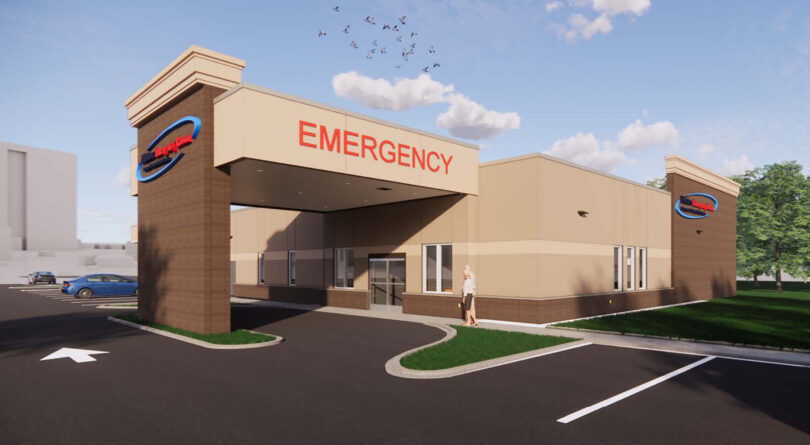 The new ER is a nearly 10,000sf facility and will be staffed with board-certified and board-eligible emergency room physicians and nurses 24 hours a day, 365 days a year. It will provide the same services as an emergency room that is housed within the walls of a hospital. The new facility will feature walk-in and ambulance entrances, 10 private treatment rooms, CT capabilities, onsite laboratory, digital ultrasound and diagnostic x-ray.