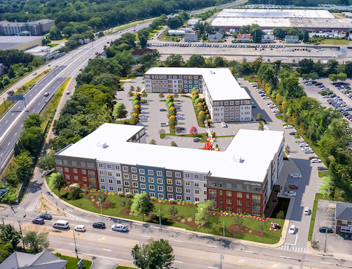 The first of two Class A apartment buildings, which will include 214 units on a 6.5-acre site across from T.F. Green International Airport on Post Road, is scheduled to open in July 2026. Previously an off-site parking area, the new development will include a mix of one-, two-, and three-bedroom units. Amenities will include a central courtyard with fire pits and lounging areas, a full-size gym, work-from-home suites, a grand lounge, a dog spa, a resort-style swimming pool, and private resident garages.