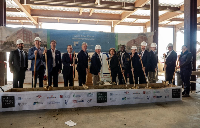 Norwalk, CT – Elected officials recently joined project leaders and the Norwalk community for the groundbreaking on the Wall Street Place redevelopment project. The event was hosted by project developers JHM Group and The Richman Group.