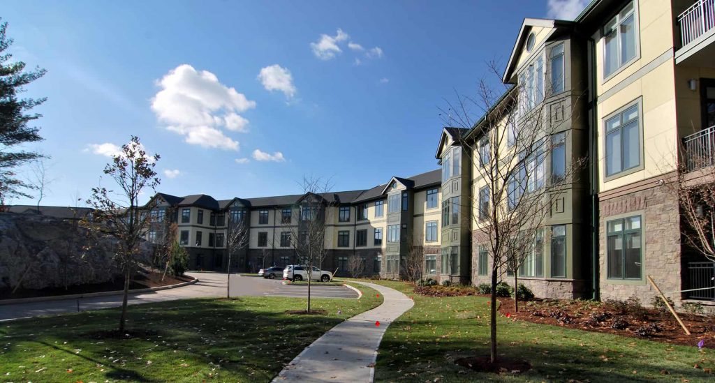 Chestnut Hill, MA – Nauset Construction recently completed Hancock Estates, an 88-unit luxury apartment community nestled in an idyllic setting just minutes from Boston. Surrounded by acres of protected conservation land, the complex is located within close proximity to prime shopping and dining venues, and offers a luxury rental housing alternative for west suburban residents.