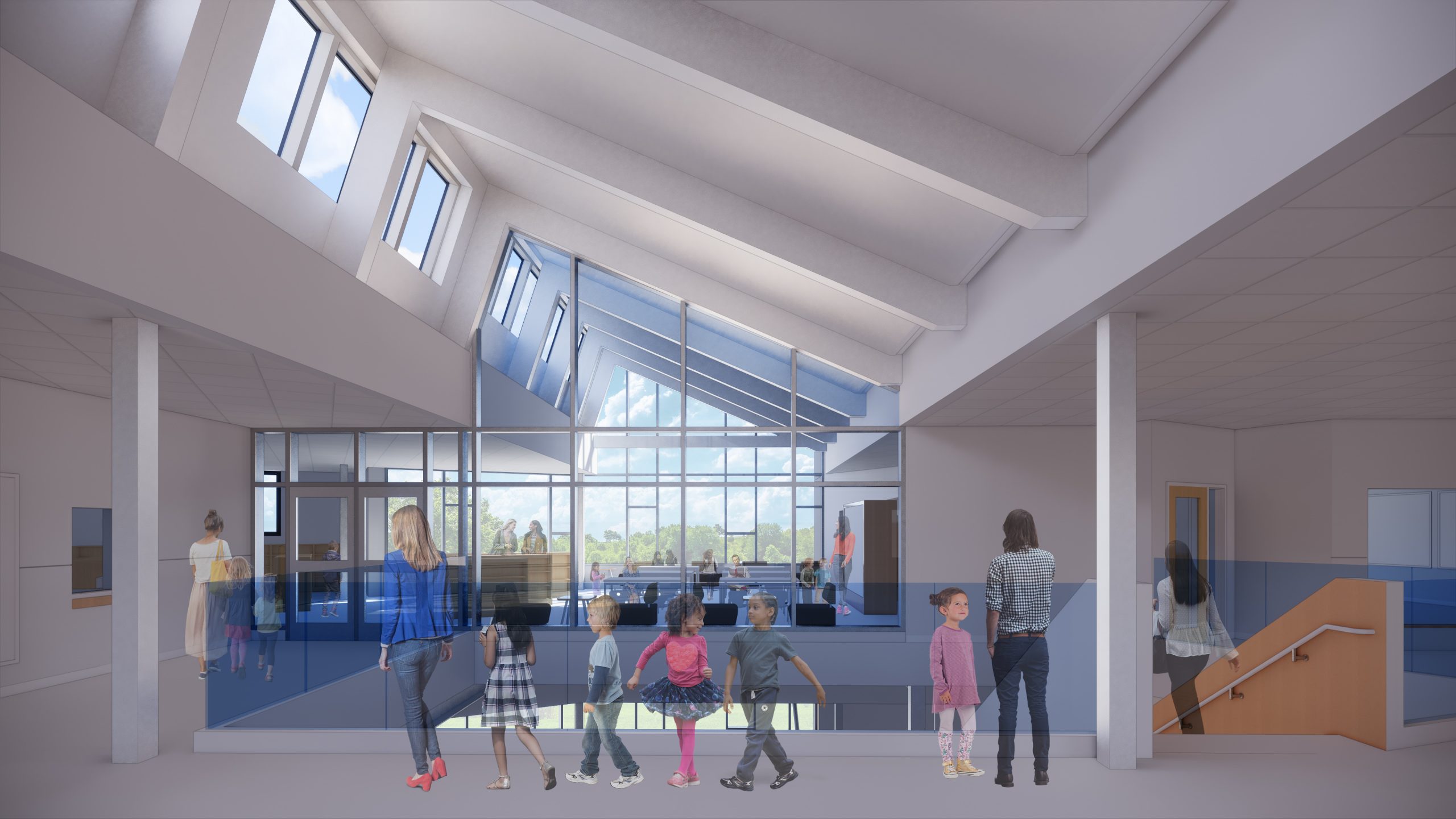 A highly efficient building enclosure, geothermal heating and cooling, low wattage LED fixtures, and centralized energy management reduce energy use to one-third of what is used by typical school buildings. Powered by a rooftop solar array capable of generating 10% more energy than required for the school itself, this 70,000sf, all-electric facility will be one of New England’s most energy-efficient public schools. Light-filled interiors, warm natural materials, and connections to the surrounding woodland and fields create a nurturing learning environment for the 400 students in kindergarten through the third grade.
