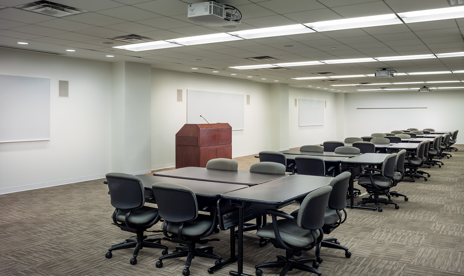 The refurbishment projects transform the functional and easily accessible conference centers into high performance and amenity-rich spaces for company conferences, training, and corporate meetings.